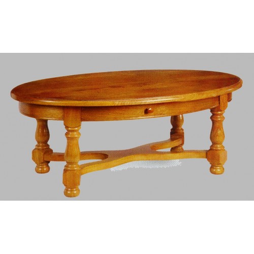 Table de salon campagnarde ovale n° 2 en chêne massif . Avec tiroir